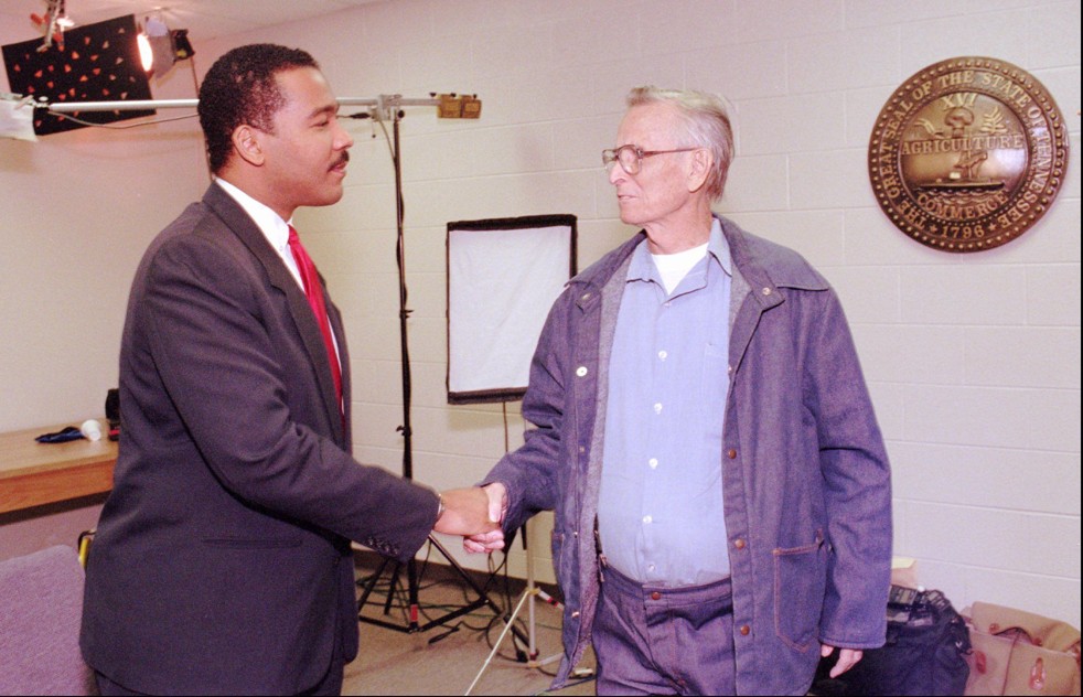 Dexter King, fils de Martin Luther King Jr, a rencontré James Earl Ray, l’assassin du célèbre activiste des droits civiques au cours d’une audience fort riche en émotions. James Earl Ray a affirmé droit dans les yeux à Dexter King au cours de ce tête-à-tête immortalisé par les médias qu’il n’était point l’assassin de son père.